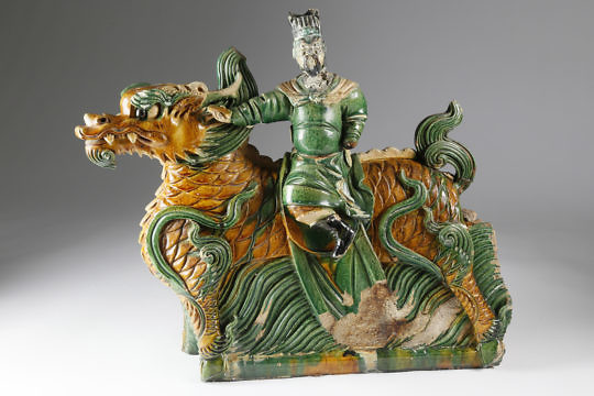 Pair Chinese Carved and Polychrome Architectural Ornamentations