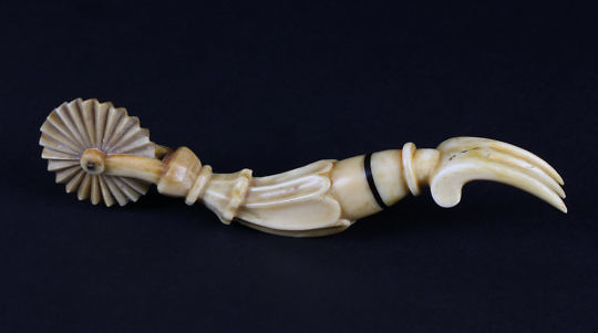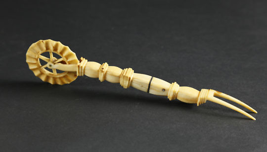 Whaleman Made, “Mother’s Helper” Whale Ivory Pie Crimper, circa 1850