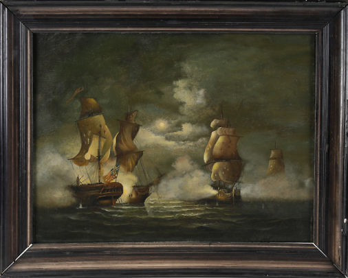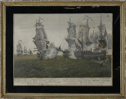 Hand Colored Engraving of Naval Engagement, 18th Century