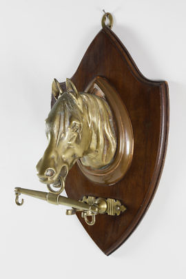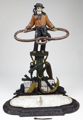 B.B. Butt Cast Iron and Polychrome Twin Horse Boot Scrape, circa 1938