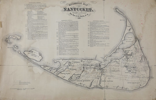 Original Historical Map of Nantucket Surveyed and Drawn by Reverend F.C. Ewer, 1869