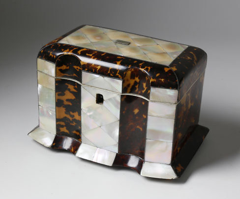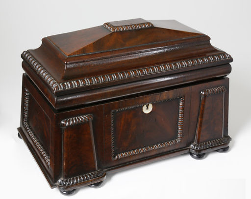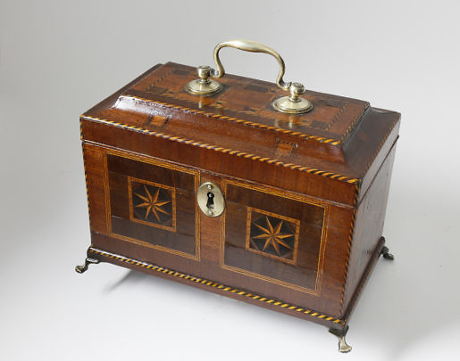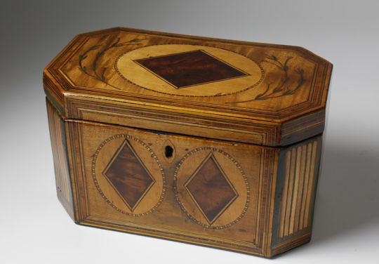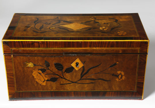 Two Chinese Export Figural Decorated Wood Tea Caddies, circa 1804