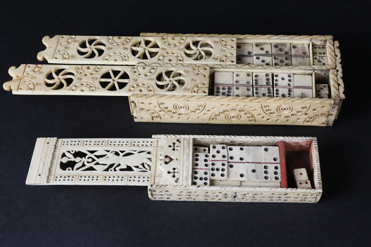Complete Set of Sailor Made Bone Dominoes, 19th Century