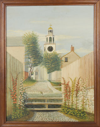 Naive Oil on Canvas “Jethro Coffin House, Sunset Hill, Nantucket”