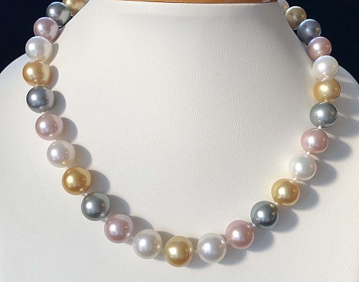 Very Fine 12mm-13.4mm South Sea, Tahitian and Pink Fresh Water Pearl Necklace