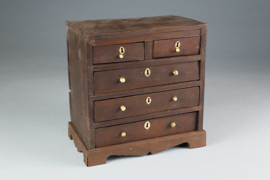 Sailor Made Miniature Cherry Two-over-Three Drawer Chest, circa 1830