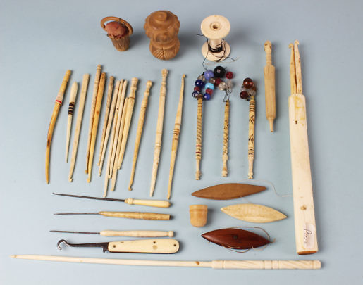 Assortment of Thirty Mostly Whalebone Implements for Sewing, Knitting and Lace Making, 19th Century