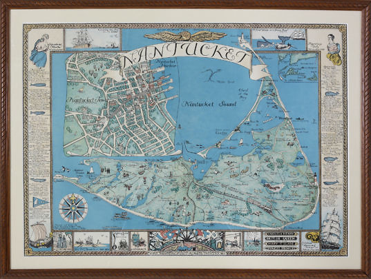 1946 Ruth Haviland Sutton Chromolithograph, “Map of Nantucket and Town”