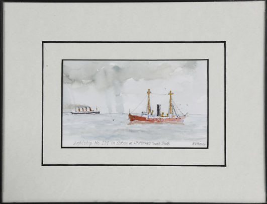 Ray Prosser Watercolor View, “Lightship No. 117 on Station at Nantucket South Shoals”