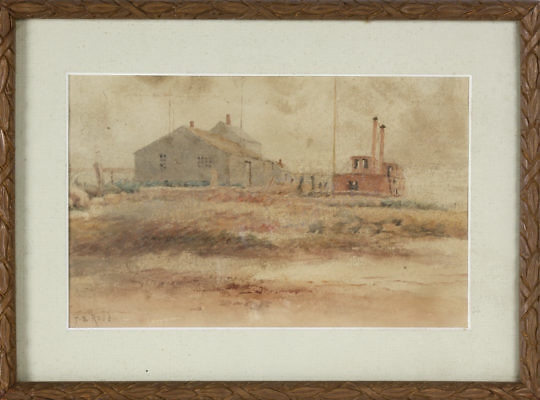 Jane Brewster Reid Watercolor View, “Swains Wharf With Trawler”