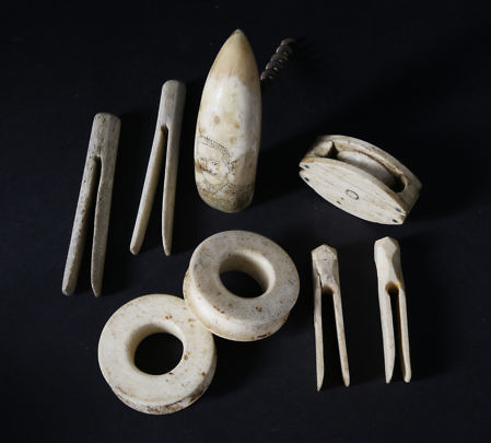 8 Whale Ivory and Whalebone Artifacts, mid 19th Century