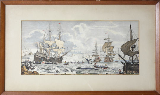 English Hand Colored Whaling Engraving, 18th Century