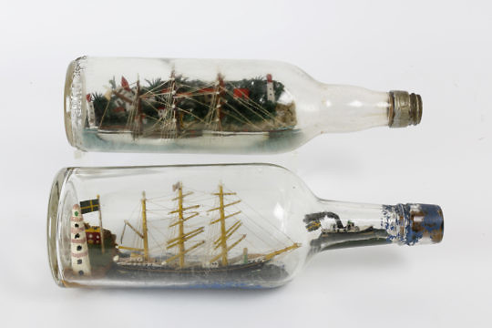 Two Folk Art Ship in Bottles Souvenir