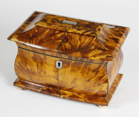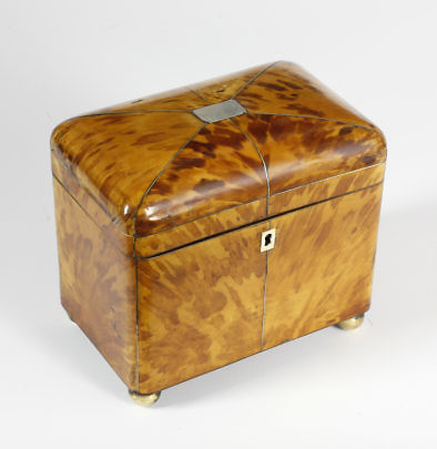 English Regency Tortoiseshell Dome Top Double Compartment Tea Caddy, 1st quarter of the 19th Century