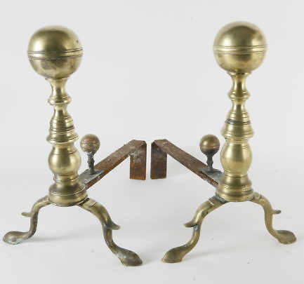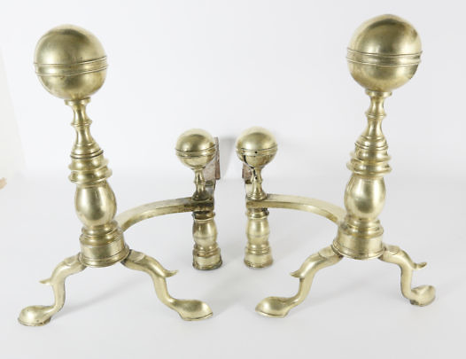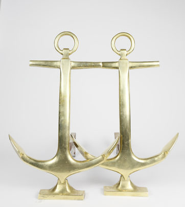 Pair of Brass Anchor Andirons, Mid Century