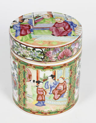 Chinese Mandarin Hand Painted Covered Porcelain Tea Caddy