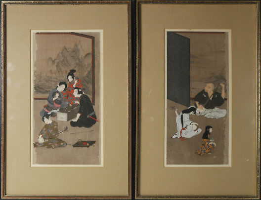 Pair of Figural Japanese Watercolors, 19th Century