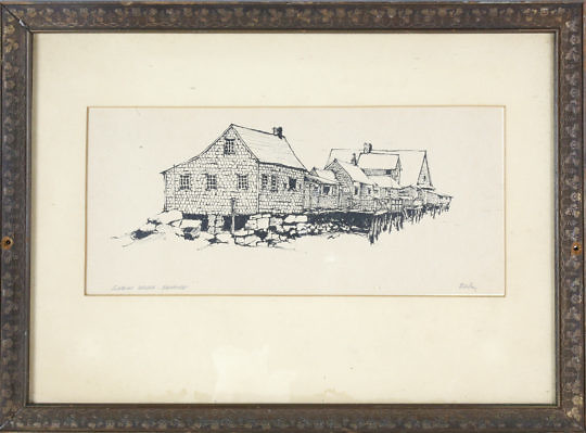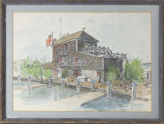 Barbara Kauffmann-Locke Pen and Watercolor on Paper, “View of the Wharf”
