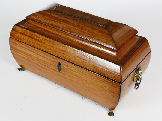 Sarcophagus Satinwood Double Compartment Tea Caddy, 19th Century