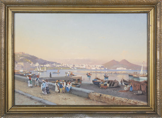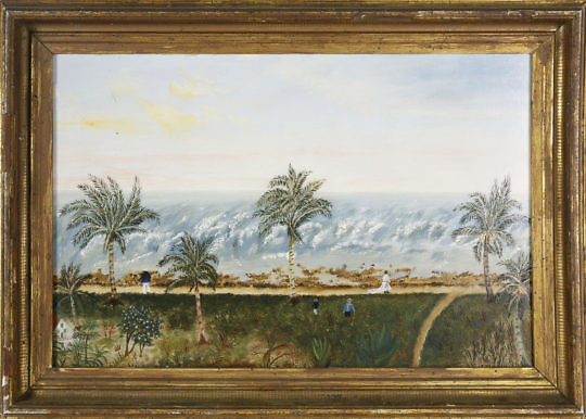 Michael Matthews Chinese Export Style Oil on Canvas, “View of the Fort, Hong Kong”