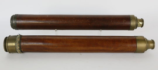 Two Mahogany and Brass Case Captain’s Spyglasses, 19th Century