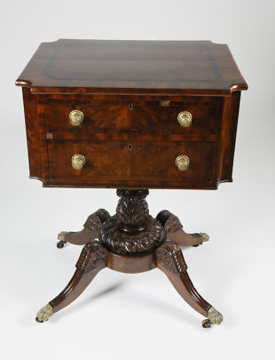 Mahogany and Burlwood Two Drawer Work Stand, 19th Century