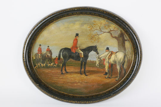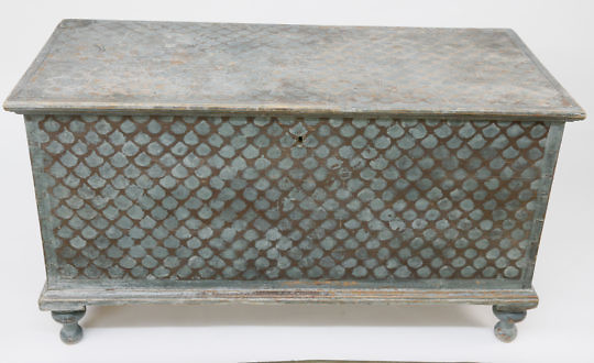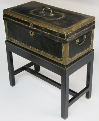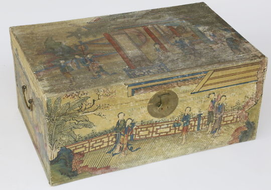 Chinese Pigskin Leather Storage Trunk with Landscape Decoration, 19th Century