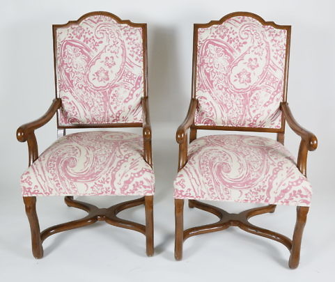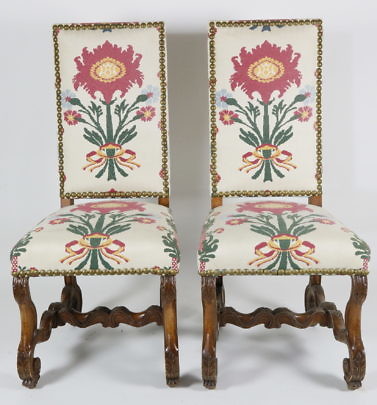 Pair of Floral Embroidered Linen Dining Chairs