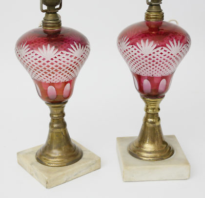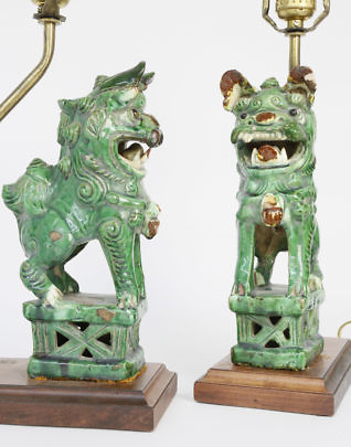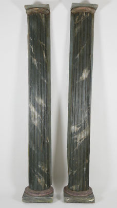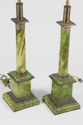 Pair of Green Faux Marble Column Lamps