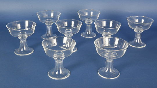 Set of 8 Signed Steuben Clear Crystal Champagne Glasses