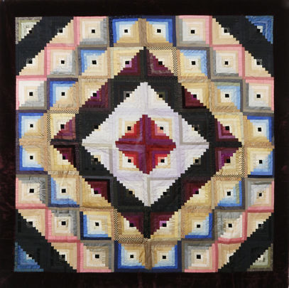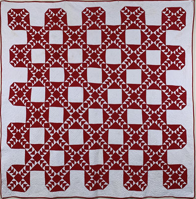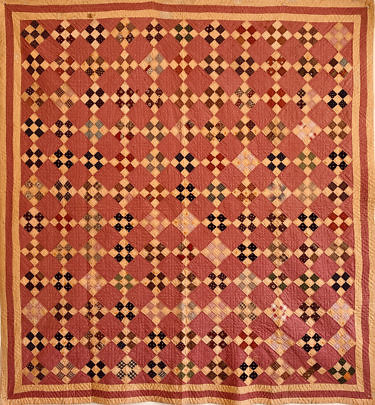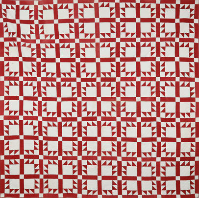 Calico Star in a Geometric Grid Patchwork Quilt, 19th Century