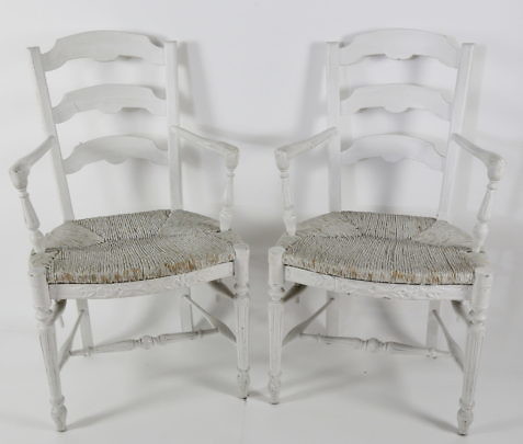 Pair of Contemporary Whitewashed French Provincial Style Rush Seat Armchairs