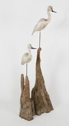 Pair of Art Deco Japanese Mixed Metal Shorebirds
