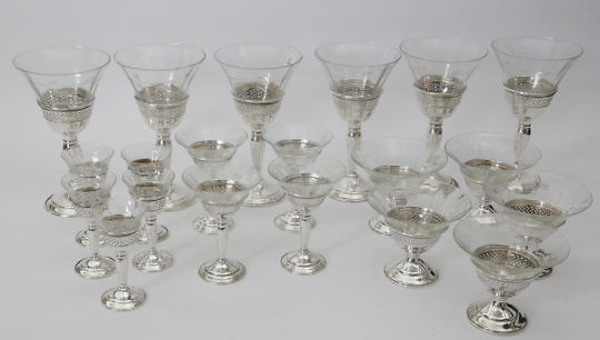 Set of Six Sterling Silver Champagne Glasses