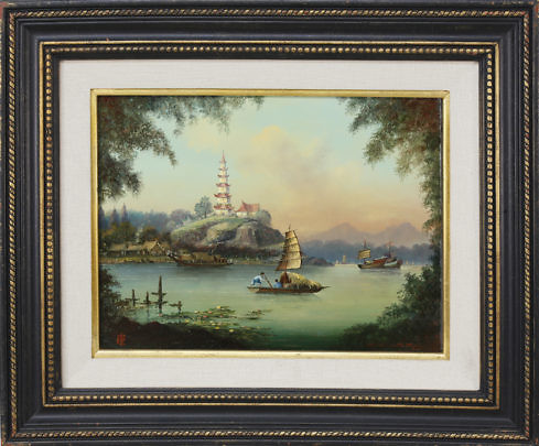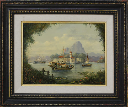 Michael Matthews Chinese Export Style Oil , “Pagoda at Whampoa Reach”
