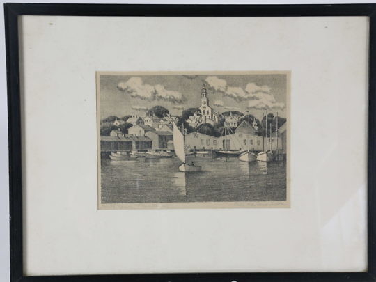 Ruth Haviland Sutton Black and White Etching, “South Tower Nantucket”