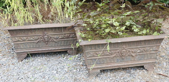 Pair of Antique Cast Iron Rectangular Flower Planters