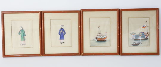 Set of Four Vintage Chinese Watercolor Portraits on Pith Paper