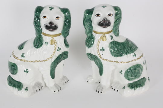 Pair of Green and White Staffordshire King Charles Spaniels