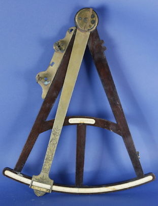 1768 Daniel Saxbey Engraved Brass and Mahogany Octant