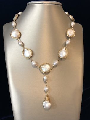 18mm White Baroque Coin Pearl Lariat Necklace