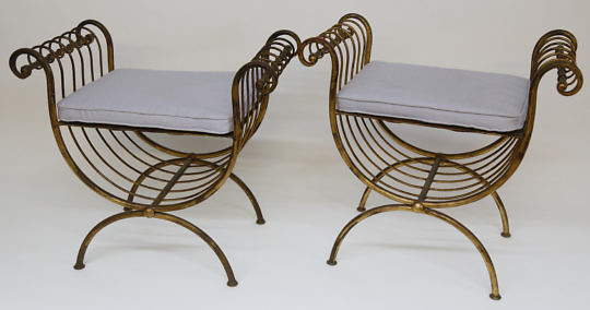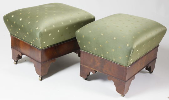 American Empire Crotch Mahogany Star Upholstered Ottomans, 19th Century
