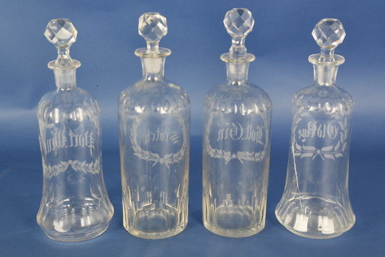 Set of 4 Engraved Crystal Decanters, 19th Century