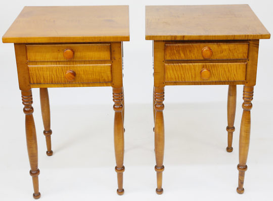 Pair of Tiger Maple Sheraton Style Two-Drawer Night Stands