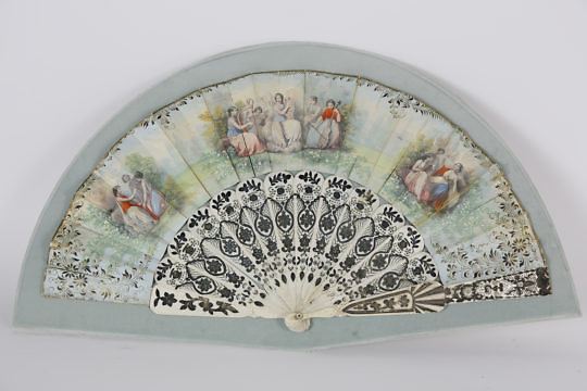 French Bone and Silver Lady’s Fan in Shadowbox, circa 1820