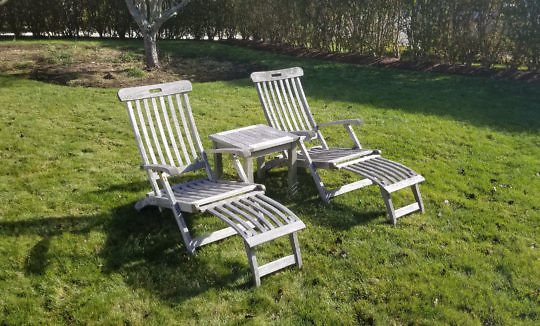 Pair Kingsley Bates Outdoor Teak Armchairs