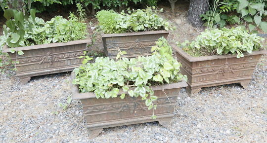 Set of Four Antique Cast Iron Rectangular Flower Planters