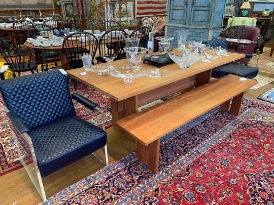 Contemporary Vermont Furniture Design Trestle Dining Table and Bench