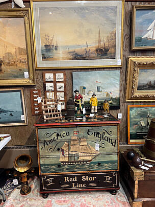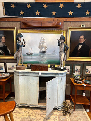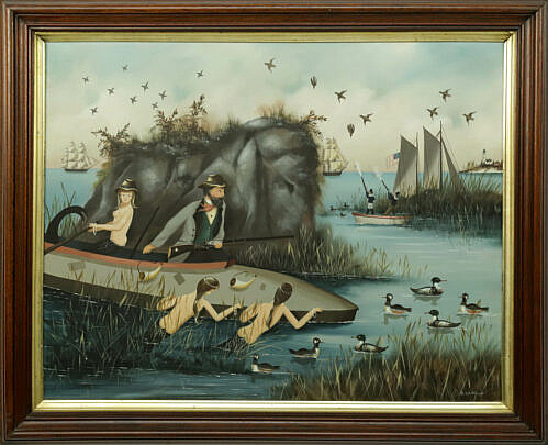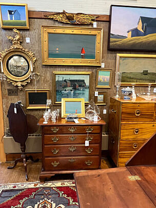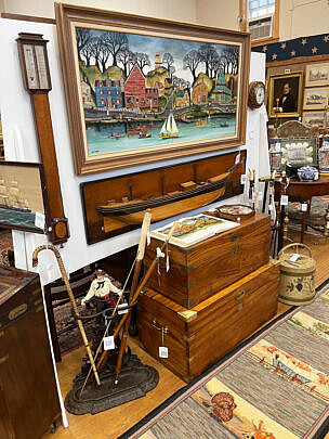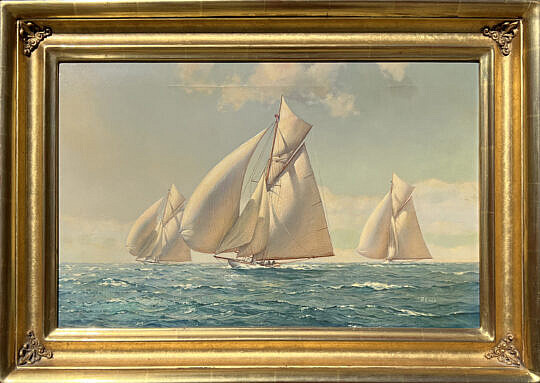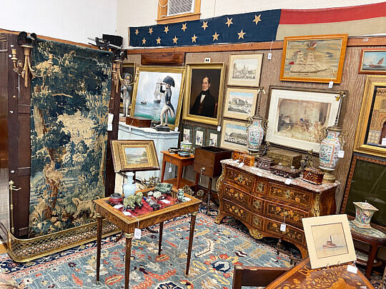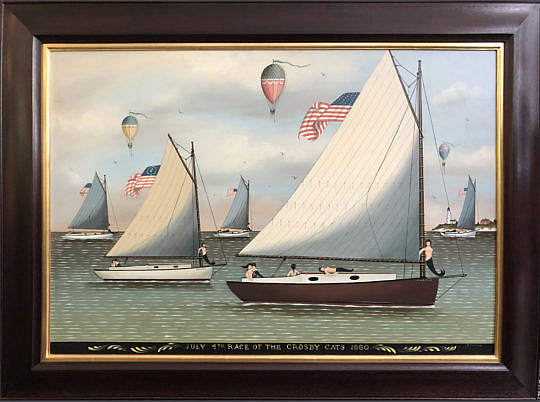 Rafael Osona Auctions Kicks off the Annual 2-Day Americana, Fine Art, Marine Online Auctions on August 6 and 7 at 9:30am. The August 6 Session-1 features several Nantucket and New England collections including the Gail and Rich Mellin 40-year Canton Collection. Fine Art offerings include 7 whimsical works by Ralph Cahoon, 5 classic Emile Gruppe, 3 Anne Ramsdell Congdon, 5 Wendell Macy, 3 classic red sail paintings by Robert Stark Jr., 2 Montegue Dawson, Arthur V. Diehl, Georgina Klitgaard (WPA), Maude Clapp, Joan Albaugh, Jan Pawlowski, Kenneth Layman, Jan Munro, George Thomas and others. For the modernist collector 6 George Nakashima “New” chairs and numerous Stephen Swift designs will delight. Sterling silver includes a rare 18th century Benjamin Bunker Nantucket coin silver porringer, .950 silver Martele pitcher, flatware services by James Robinson, Cartier, Reed & Barton, Pair of Art Deco Tiffany & Co. compotes, Peter, Anne & Wm Bateman cruet set. Abundant American furnishings include 2 Nantucket Windsor chairs, Chippendale oxbow secretary and chests, porringer table, plus bull’s eye mirrors, 5 campaign chests and more. An assortment of 16 Nantucket baskets…both antique and lady’s classic handbags will delight the collector. Outdoor Weatherend furniture in classic yacht white finish will dress the garden. Over 150 pieces of Canton porcelains from the Mellin collection is complemented by additional Chinese export porcelains and jadite. A rare Chart of Nantucket Shoals Surveyed by Capt. Paul Pinkham, circa 1812 will intrigue. Period fireplace equipment, decorative arts, oriental carpets, textiles, quilts and much more.