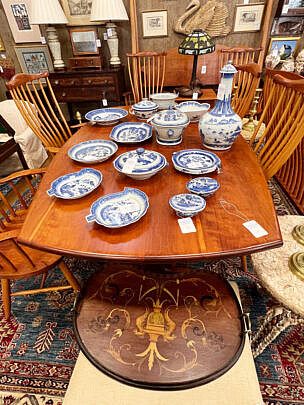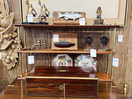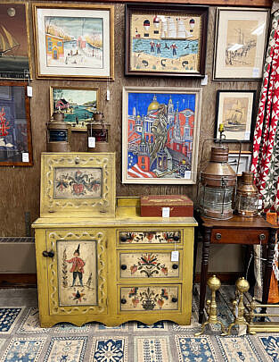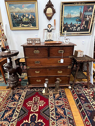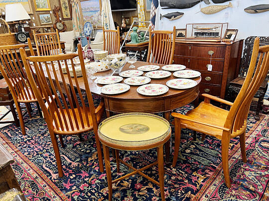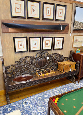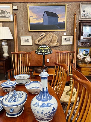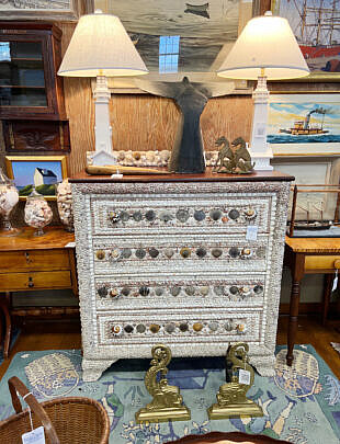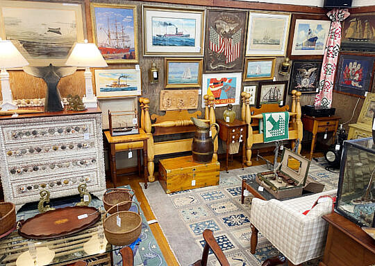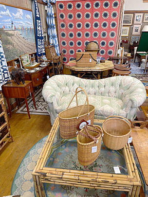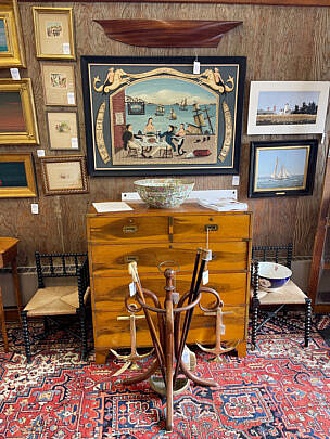 …two James Cromartie, three Jan Pawlowski, two Joan Albaugh, Stephen Huneck, Jerome Howes, two William Lowe, Sybil Goldsmith, four Doris & Richard Beer watercolors and more; several Stephen Swift modern furniture pieces as well as antique period American & English Furnishings including campaign, Smith & Hawken Outdoor Teak; Varied collection of 34 Nantucket baskets including 6 by Jose Reyes, and other makers such as Harry Hilbert, Ferdinand Sylvaro, Wm Appleton, Paul Willer, Bill Sevrens, GL Brown and more; antique Sailor’s Valentines and shell encrusted décor, Rare Nantucket coin silver ladle and spoons and sterling silver flatware services by Cartier, Reed & Barton and Stieff, Georgian serving pieces, several British Regency Tea Caddies, Estate Jewelry, Collection of 22 antique Canes and Walking Sticks, 19 Vintage Patchwork Quilts, Tony Sarg Memorabilia, Collection of 23 Doorstops, 19th C. Canton, Spode Blue Trade Winds Fine Stone Dinner Service for Twelve, 13 pairs of vintage and antique andirons and fireplace fenders, numerous hand knotted Oriental carpets and hooked rugs, Nautical Port and Starboard Lights, half hulls, telescopes etc., and much more! Telephone, Absentee and Live Online Bidding available. LIVE PREVIEW: December 1 and 2 from 10am to 5pm at the American Legion Hall, 21 Washington Street, Nantucket Island, Massachusetts. Online auction begins promptly 9:30am December 3, 2022.